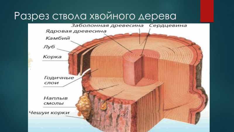 Слайд 9Разрез ствола хвойного дерева
