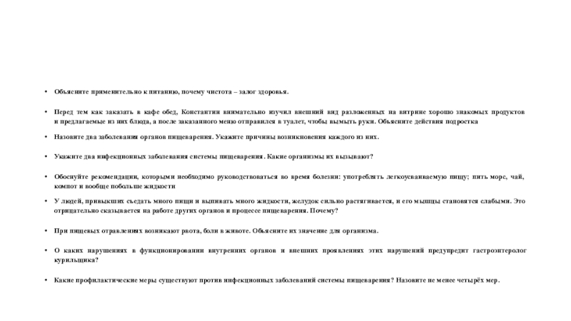 Слайд 30Объясните применительно к питанию, почему чистота – залог здоровья.