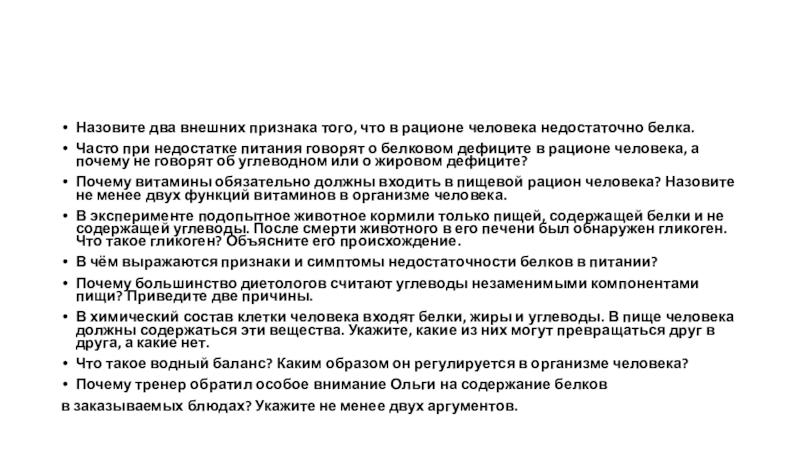 Слайд 32Назовите два внешних признака того, что в рационе человека недостаточно белка.