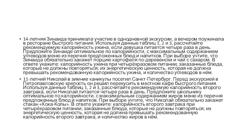 Слайд 2614-летняя Зинаида принимала участие в однодневной экскурсии, а вечером поужинала в