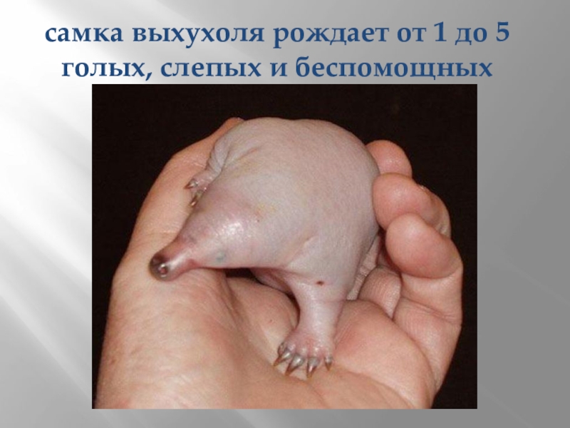 Слайд 9самка выхухоля рождает от 1 до 5 голых, слепых и беспомощных