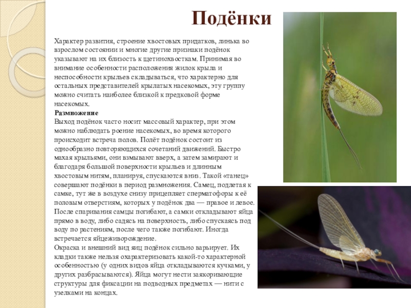 Характер развития, строение хвостовых придатков, линька во взрослом состоянии и многие