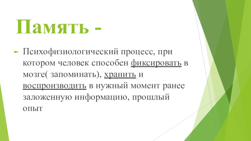 запоминать), хранить и воспроизводить в нужный момент ранее заложенную информацию, прошлый опыт