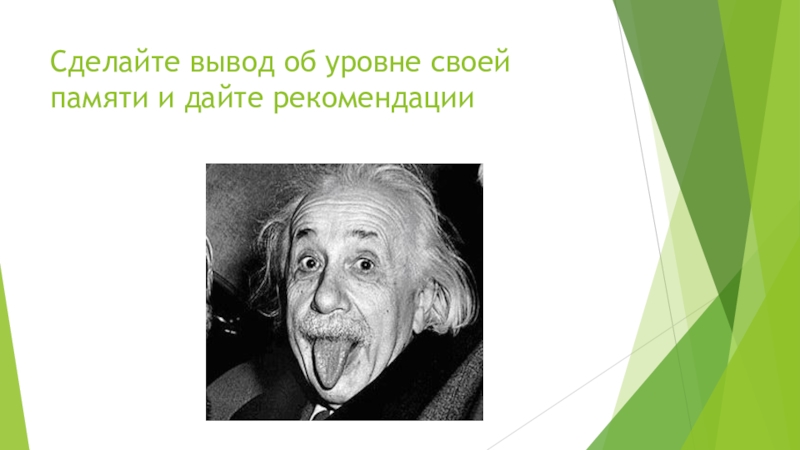 Слайд 19Сделайте вывод об уровне своей памяти и дайте рекомендации