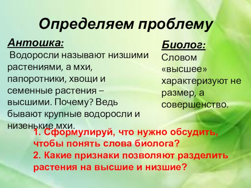 2. Какие признаки позволяют разделить растения на высшие и низшие?