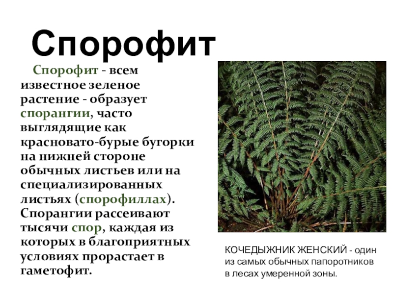 КОЧЕДЫЖНИК ЖЕНСКИЙ - один из самых обычных папоротников в лесах умеренной зоны.