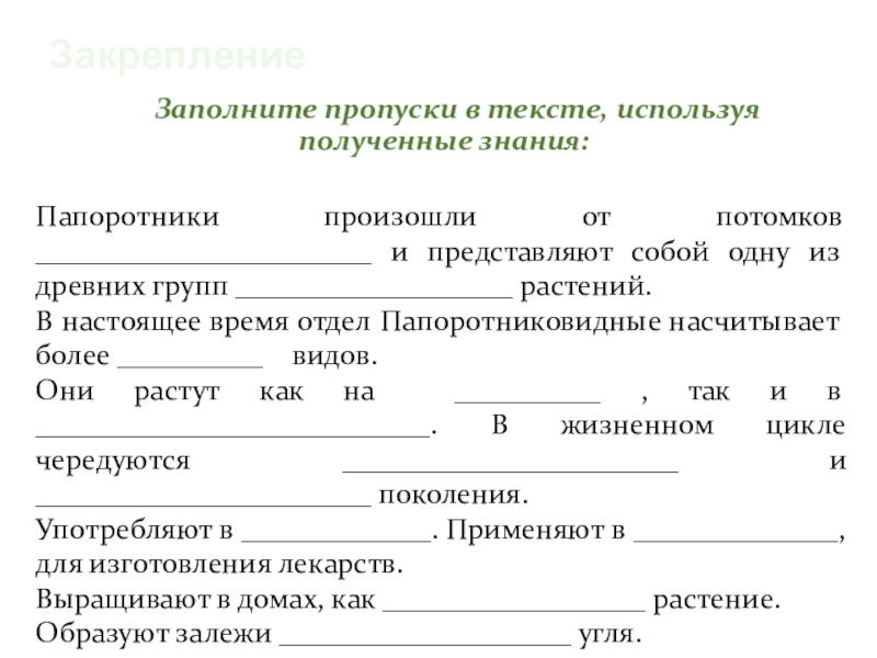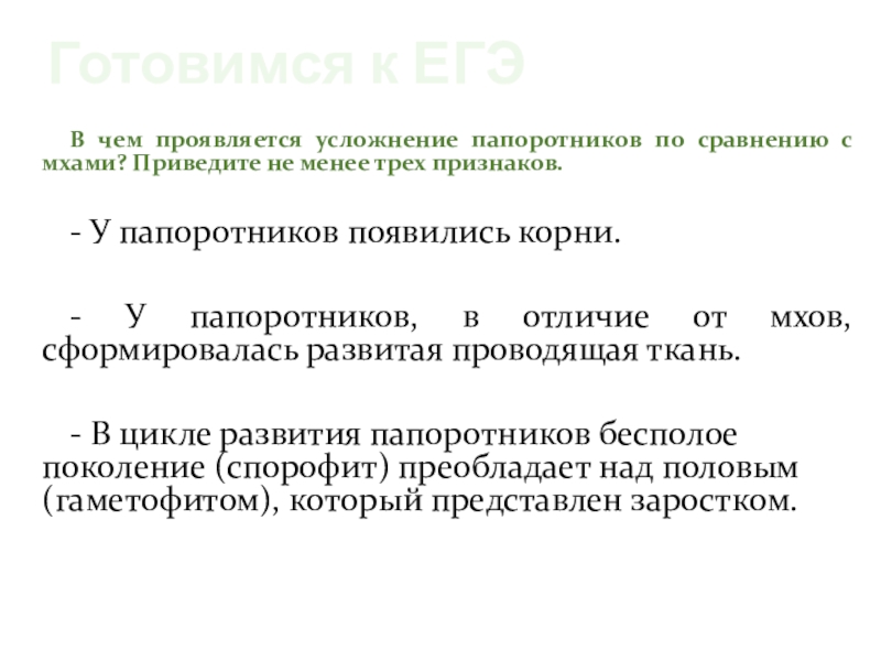 3. Обоснуйте принадлежность папоротников к высшим растениям.