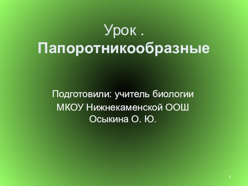 Урок . ПапоротникообразныеПодготовили: учитель биологииМКОУ Нижнекаменской ООШ Осыкина О. Ю.