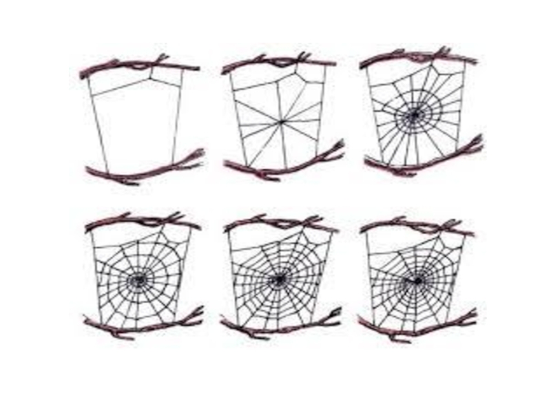 спирали и 35 витков спирали – ни больше, ни меньше. Треугольная рама – основа будущей паутины. Внутри этой рамы паук протягивает несколько нитей, которые пересекаются в центре. Паук комочком отмечает центр паутины и начинает от него протягивать все свои многочисленные радиусы, скрепляя их спиральной нитью, а затем прокладывает ловчие нити. В точках пересечения спирали и радиуса паук связывает их ногами.