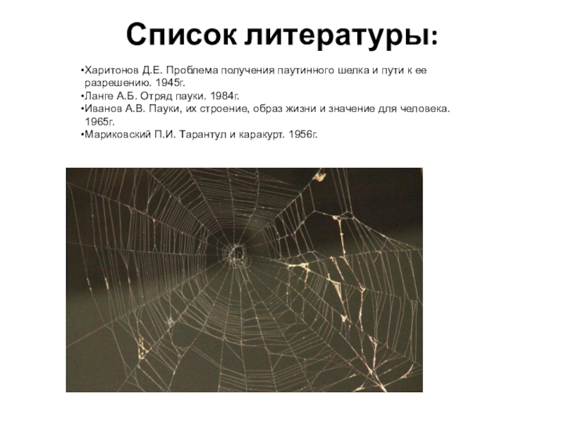 Слайд 15Ученые всего мира заинтересовались составом паутины и пытаются выткать из неё