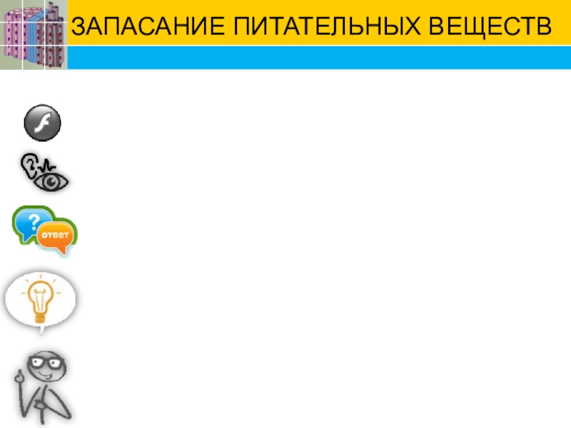 Слайд 11ЗАПАСАНИЕ ПИТАТЕЛЬНЫХ ВЕЩЕСТВ