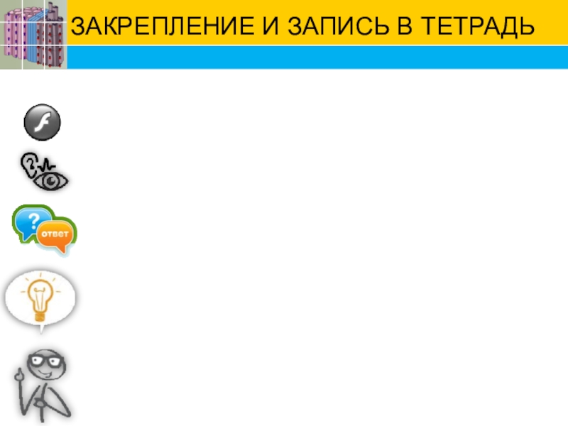Слайд 8ЗАКРЕПЛЕНИЕ И ЗАПИСЬ В ТЕТРАДЬ