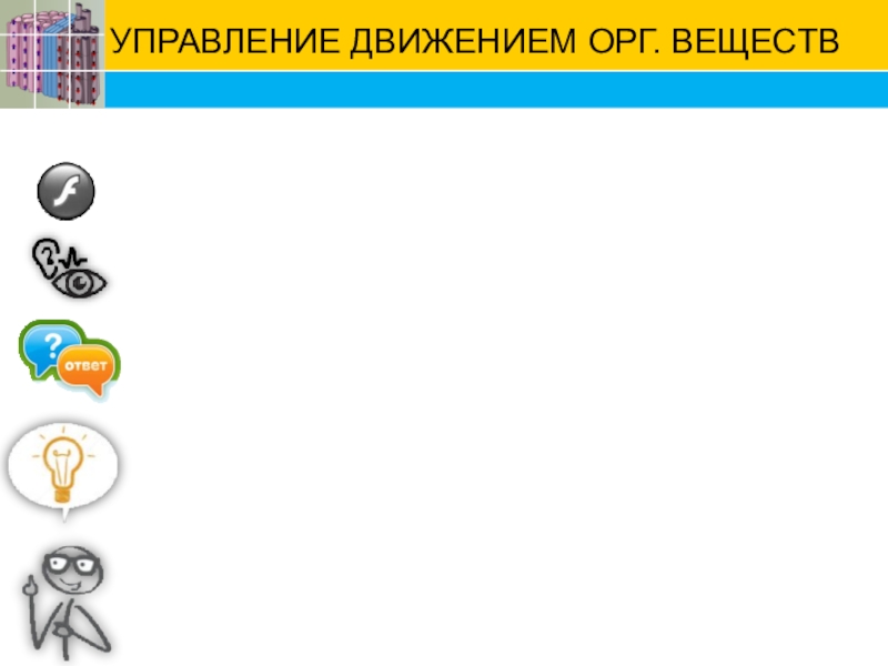 Слайд 10УПРАВЛЕНИЕ ДВИЖЕНИЕМ ОРГ. ВЕЩЕСТВ