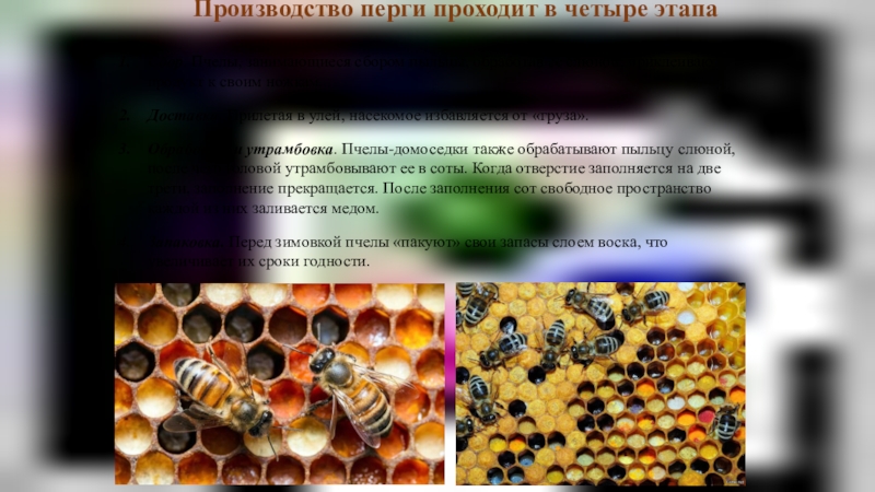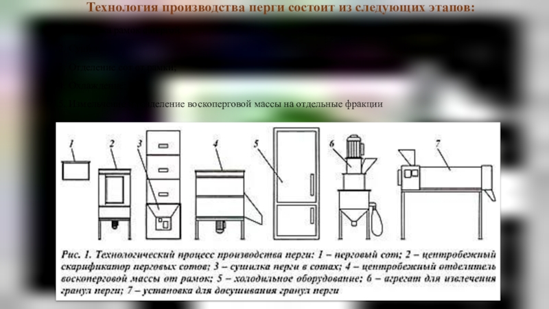 Слайд 7Технология производства перги состоит из следующих этапов: