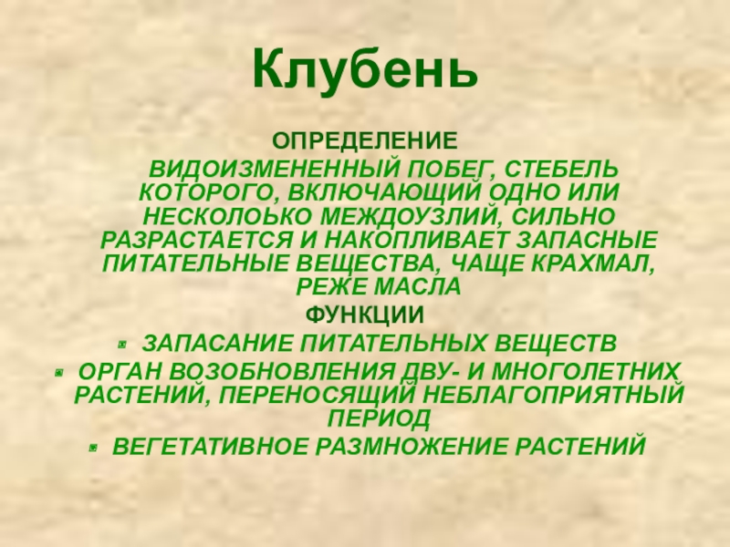 ВИДОИЗМЕНЕННЫЙ ПОБЕГ, СТЕБЕЛЬ КОТОРОГО, ВКЛЮЧАЮЩИЙ ОДНО ИЛИ НЕСКОЛОЬКО МЕЖДОУЗЛИЙ, СИЛЬНО РАЗРАСТАЕТСЯ