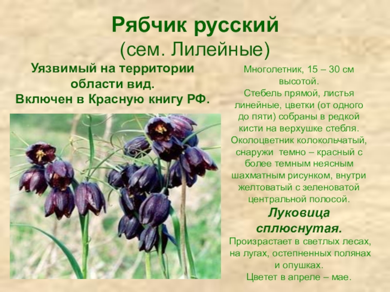 Слайд 1Первоцветы и раннецветущие растения Красной книги Белгородской области, имеющие видоизмененные побеги