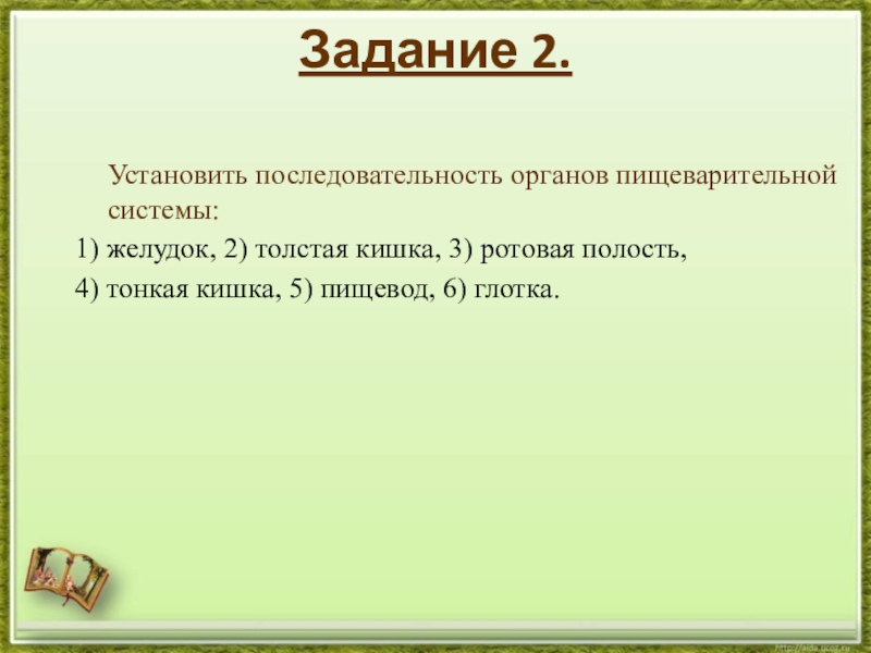 4) тонкая кишка, 5) пищевод, 6) глотка.
