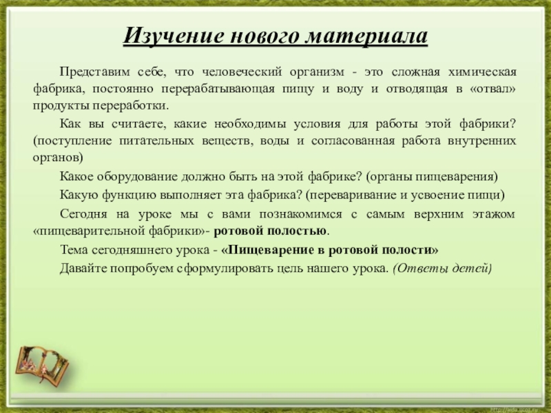 Сегодня на уроке мы с вами познакомимся с самым верхним этажом «пищеварительной фабрики»- ротовой полостью.