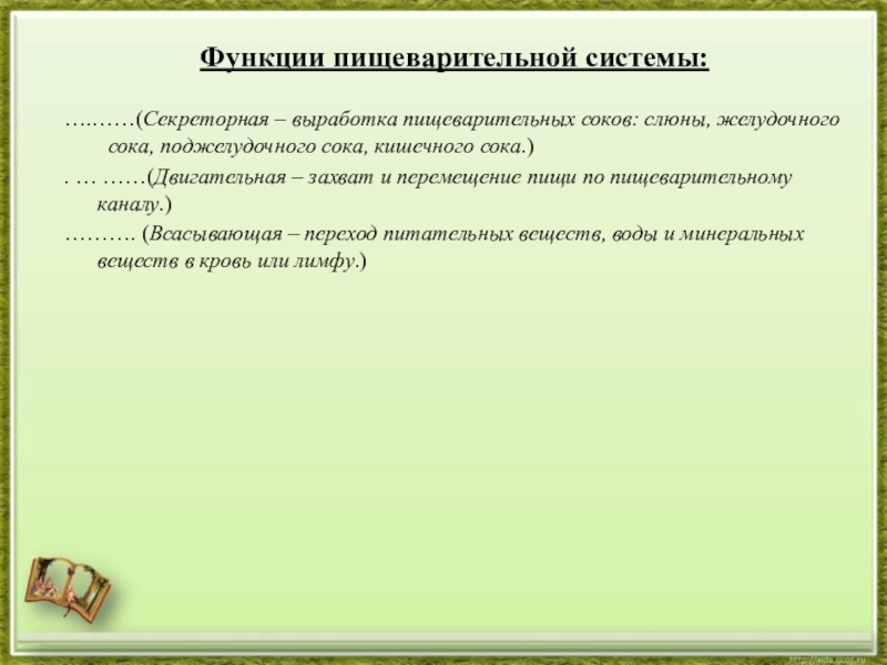 ………. (Всасывающая – переход питательных веществ, воды и минеральных веществ в кровь или лимфу.)