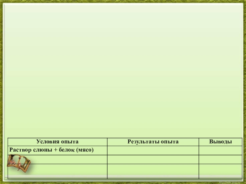 обработке пищи в ротовой полости; свойствах ферментов; рефлекторной регуляции пищеварения в ротовой полости.