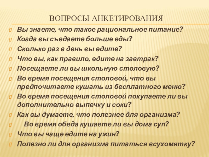 Слайд 16ВОПРОСЫ АНКЕТИРОВАНИЯ