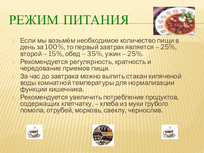 регулярность питания, т.е. приемы пищи в одно и то же время суток;