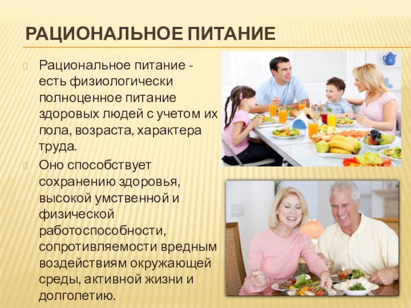 Рациональное питание - есть физиологически полноценное питание здоровых людей с