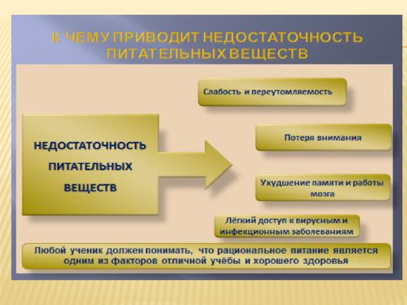 Пища должна содержать пищевые вещества в достаточном количестве и определенном соотношении, которые удовлетворяли бы физиологическим потребностям организма.