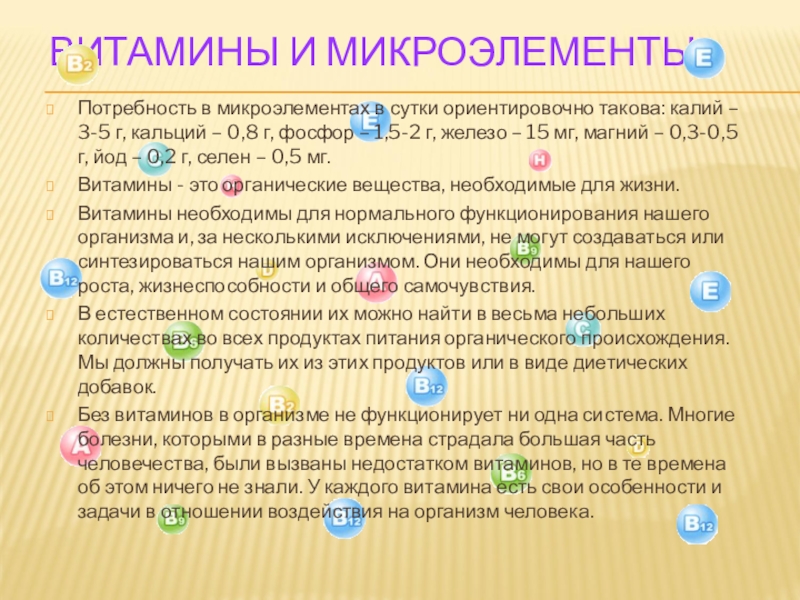 Слайд 9ВИТАМИНЫ И МИКРОЭЛЕМЕНТЫ