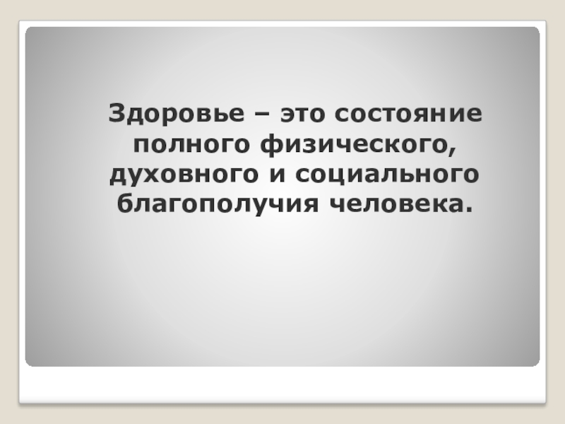Здоровье – это состояние полного физического, духовного и социального благополучия человека.