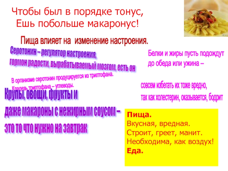 даже макароны с нежирным соусом –