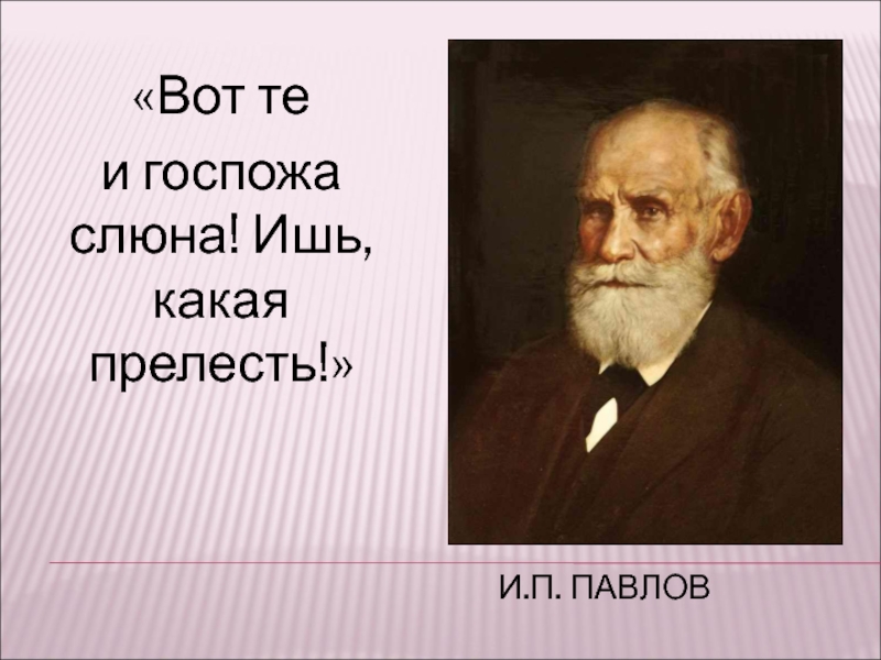 И.П. ПАВЛОВ«Вот те и госпожа слюна! Ишь, какая прелесть!»