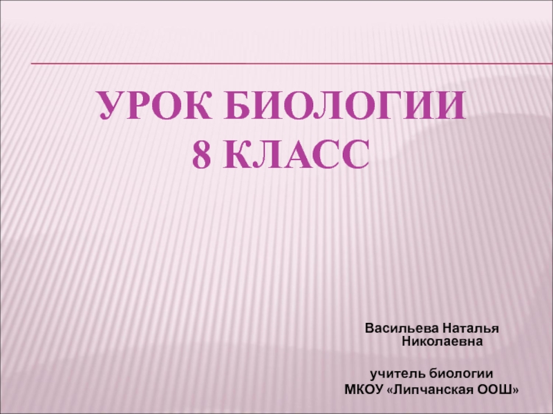 УРОК БИОЛОГИИ  8 КЛАССВасильева Наталья Николаевна учитель биологии МКОУ «Липчанская ООШ»
