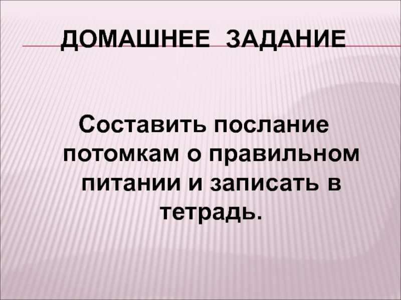 ДОМАШНЕЕ  ЗАДАНИЕСоставить послание потомкам о правильном питании и записать в тетрадь.