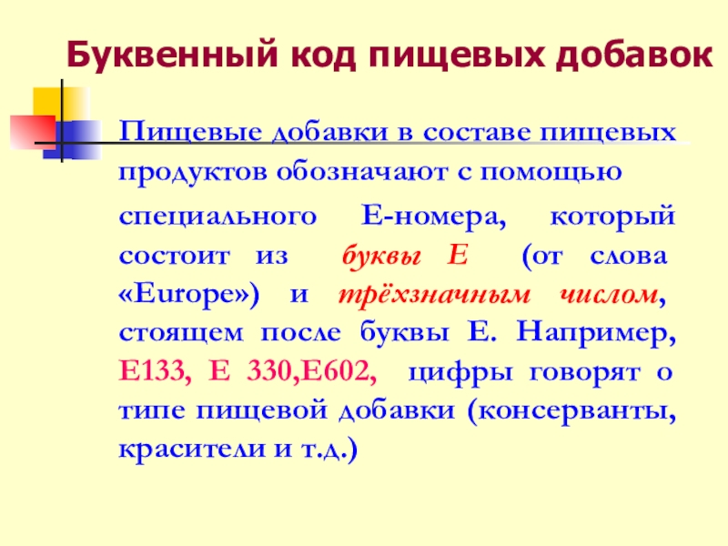 Е300 – Е399 – АНТИОКИСЛИТЕЛИ (замедляют окисление, предохраняя продукты от порчи);