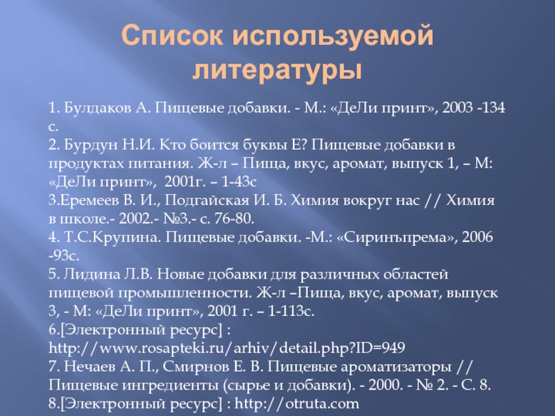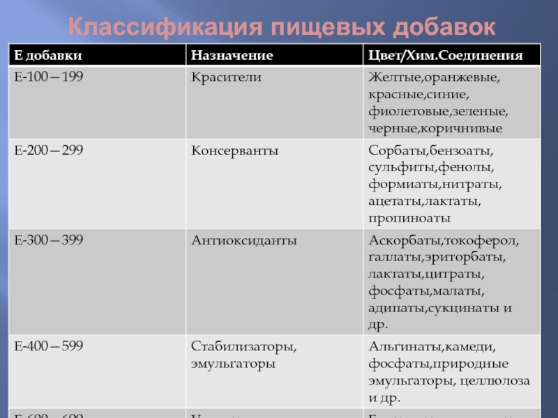 Запрещены: Е 103, Е 105, Е 111, Е 121, Е 123, Е 125, Е 126, Е 130, Е 152, Е216,Е952.