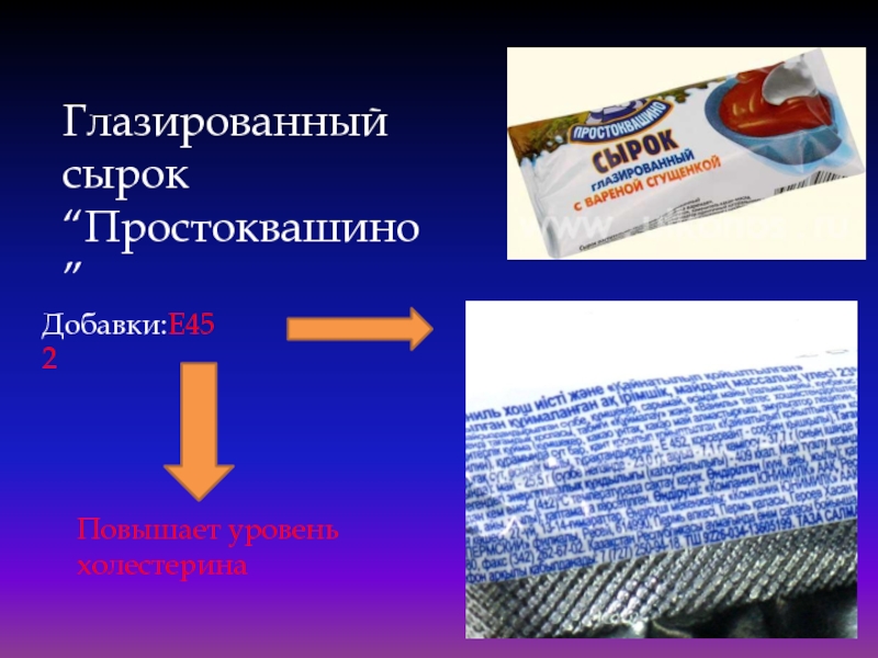 Повышают уровень холестерина: Е 320, Е 321,Е 338, Е 339, Е 340, Е 341, Е 450, Е 451, Е 452, Е 453, Е 454, Е 461, Е 462, Е 463, Е 465, Е 466.