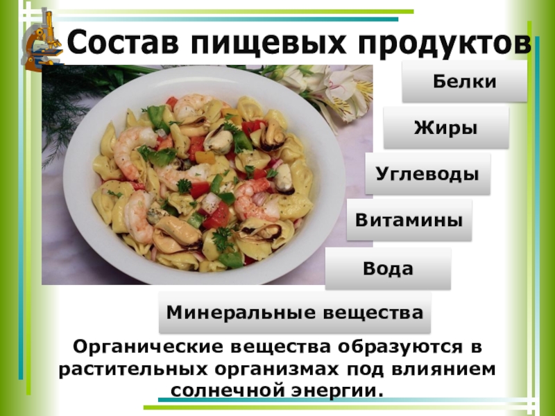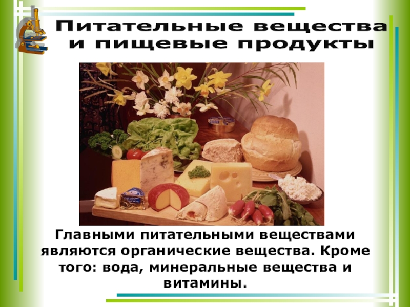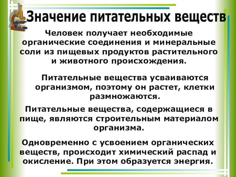 Питательные вещества, содержащиеся в пище, являются строительным материалом организма.