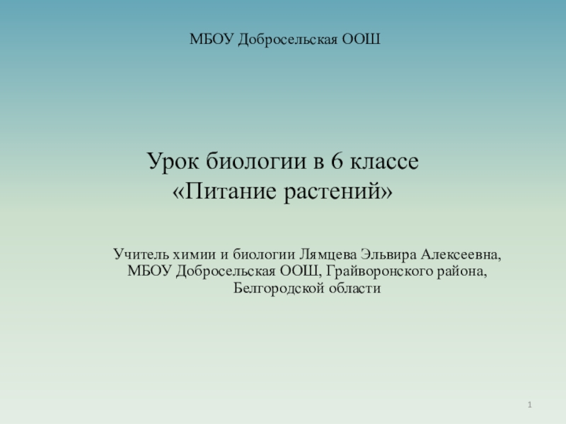 Лямцева Эльвира Алексеевна, МБОУ Добросельская ООШ, Грайворонского района, Белгородской области