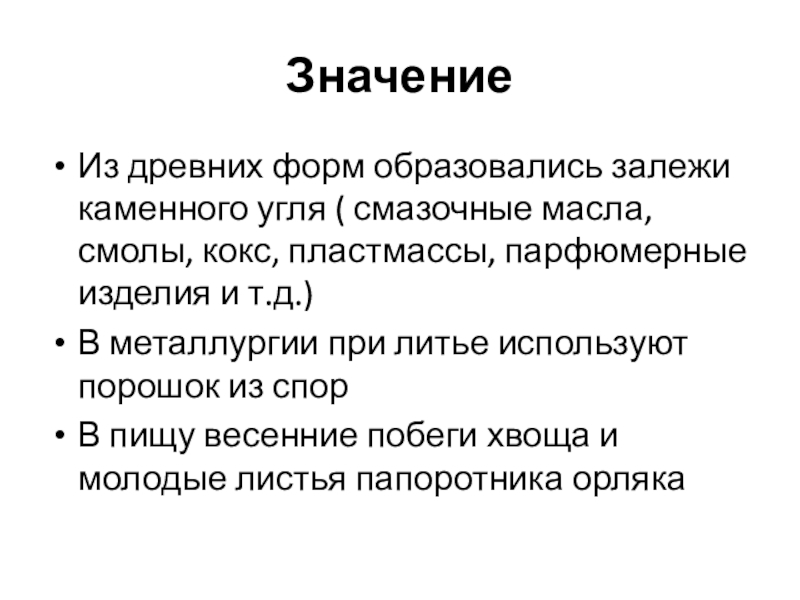 Значение Из древних форм образовались залежи каменного угля ( смазочные масла, смолы, кокс, пластмассы, парфюмерные изделия и