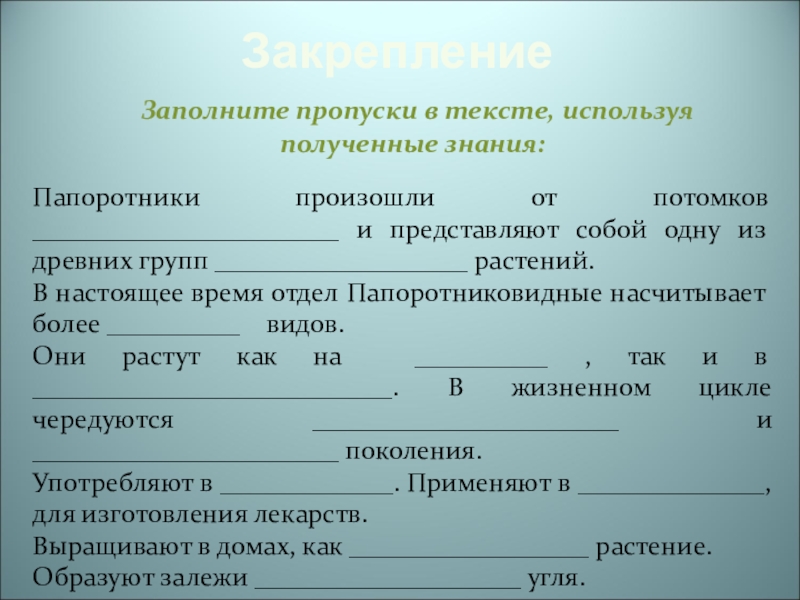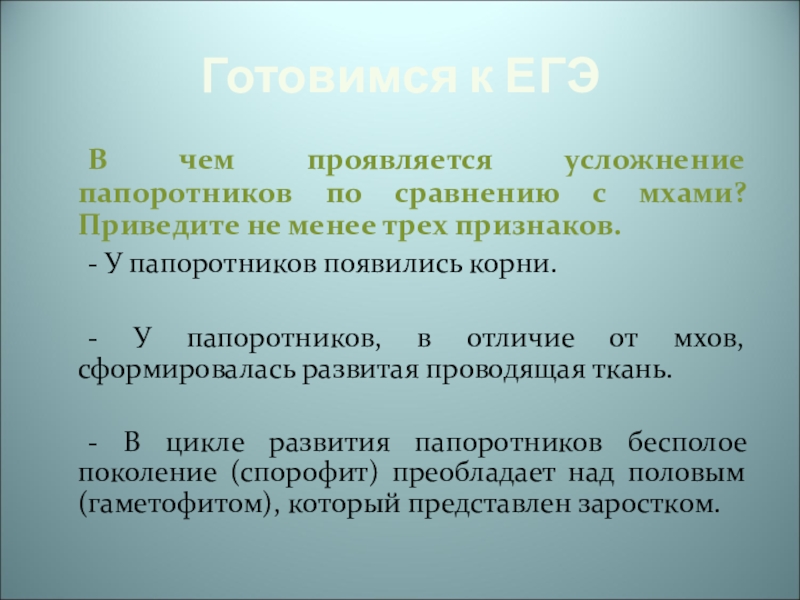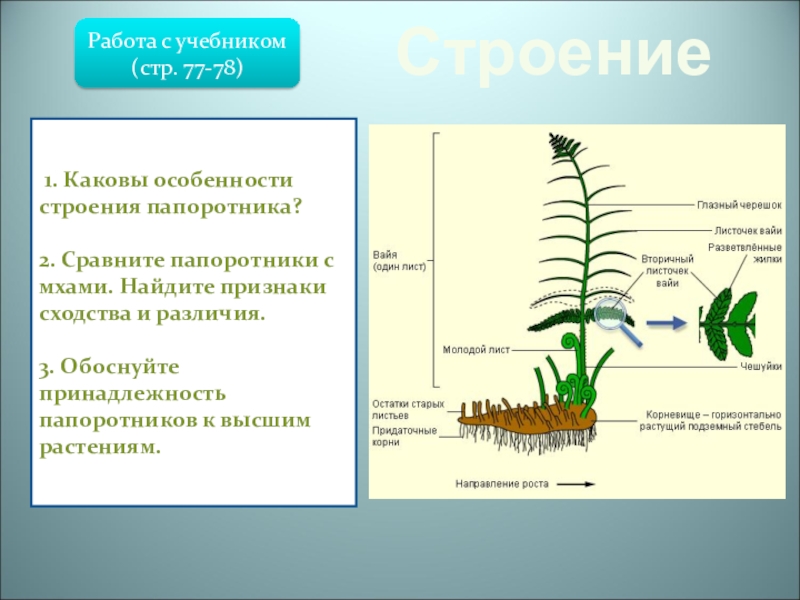 3. Обоснуйте принадлежность папоротников к высшим растениям.
