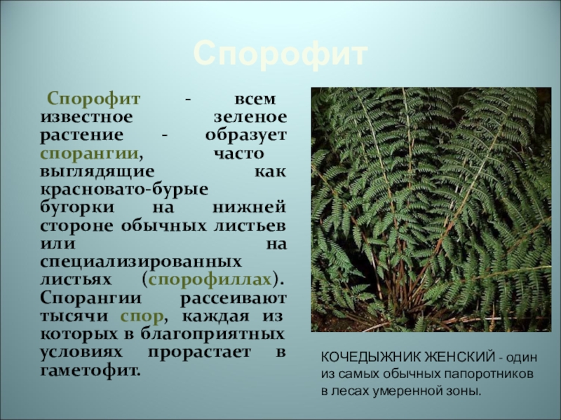 КОЧЕДЫЖНИК ЖЕНСКИЙ - один из самых обычных папоротников в лесах умеренной зоны.