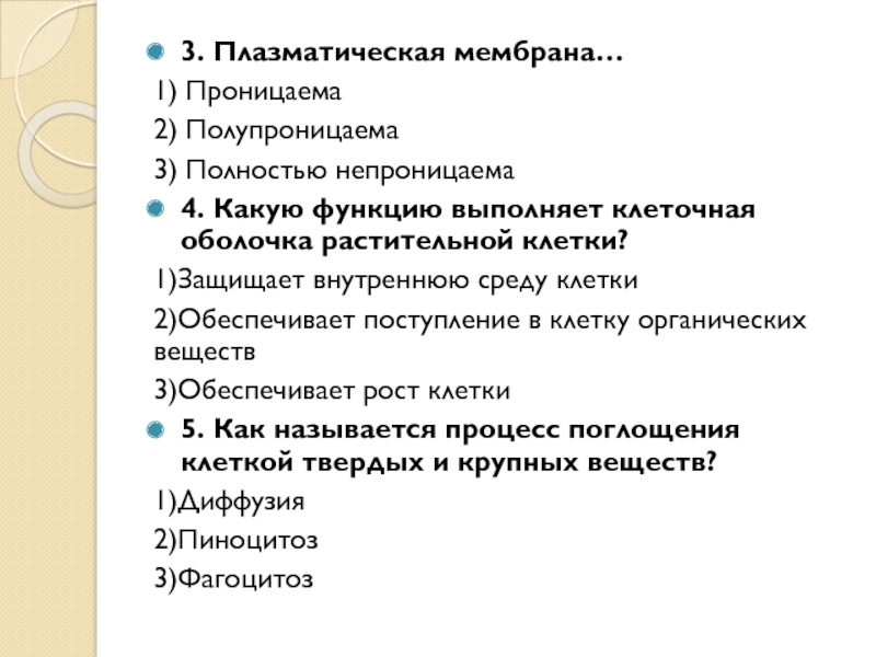 5. Как называется процесс поглощения клеткой твердых и крупных веществ?