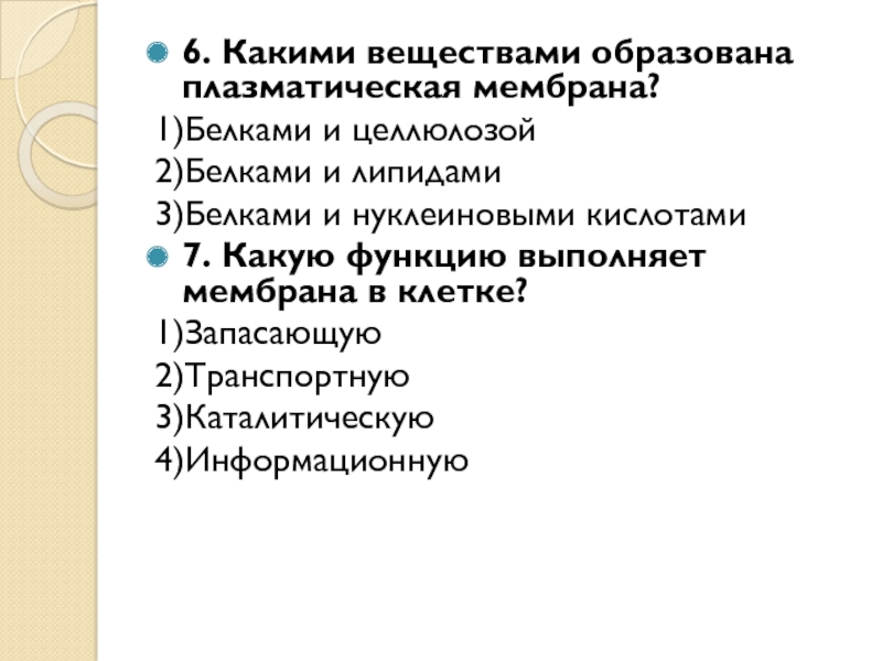 Слайд 246. Какими веществами образована плазматическая мембрана?
