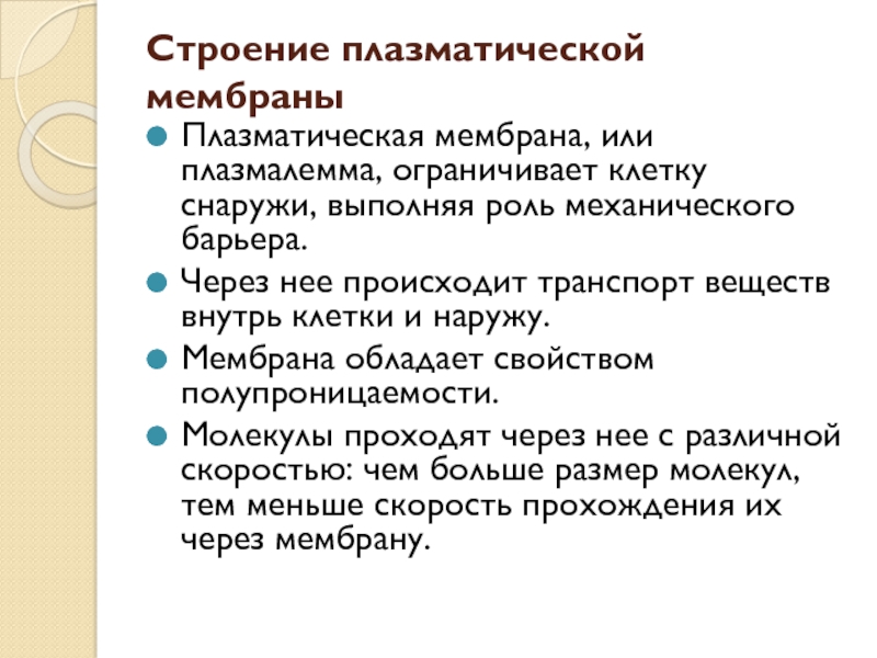 Плазматическая мембрана, или плазмалемма, ограничивает клетку снаружи, выполняя роль