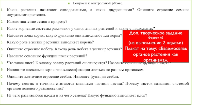 Плакат на тему: «Взаимосвязь органов растения как организма».