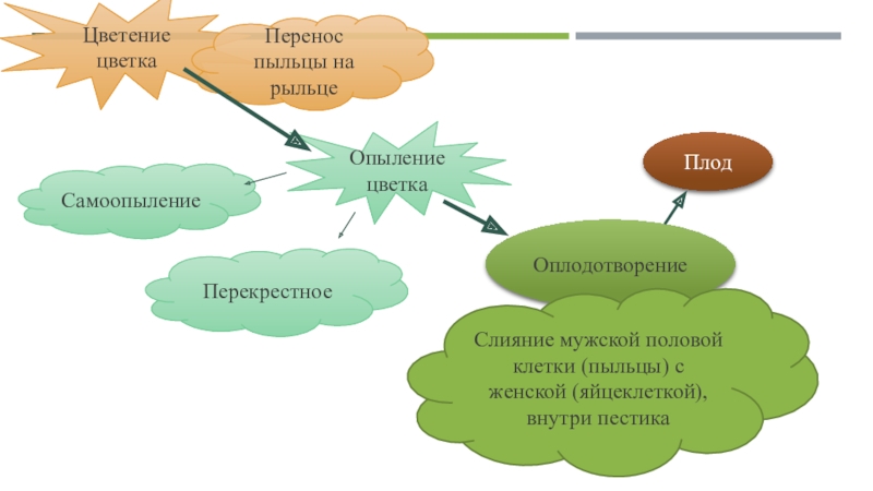 Слияние мужской половой клетки (пыльцы) с женской (яйцеклеткой), внутри пестика