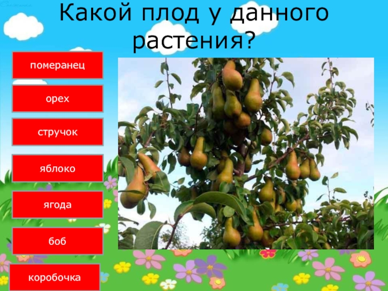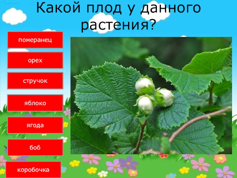 Какой плод у данного растения?померанецорехстручоккоробочкабобяблокоягода