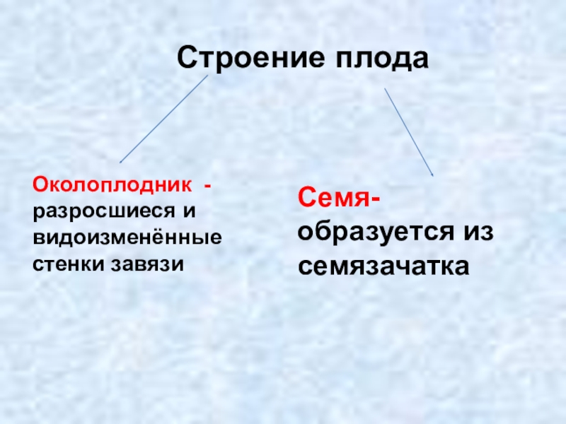 Строение плодаОколоплодник - разросшиеся и видоизменённые стенки завязиСемя- образуется из семязачатка