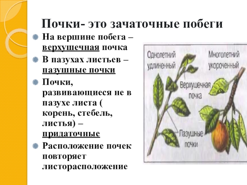 Презентация, доклад по биологии на тему Побег и почки (6 класс)